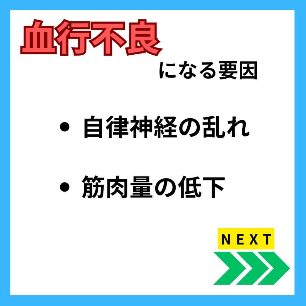 筋肉はポンプの役目をしているので筋肉量が低下してくると心臓に戻ってくる血液の量が減るので結果として血液循環が弱ってきます。