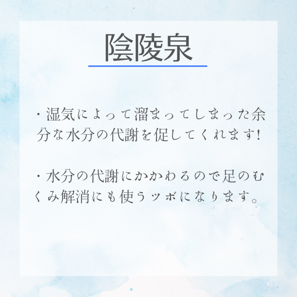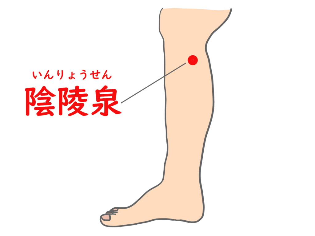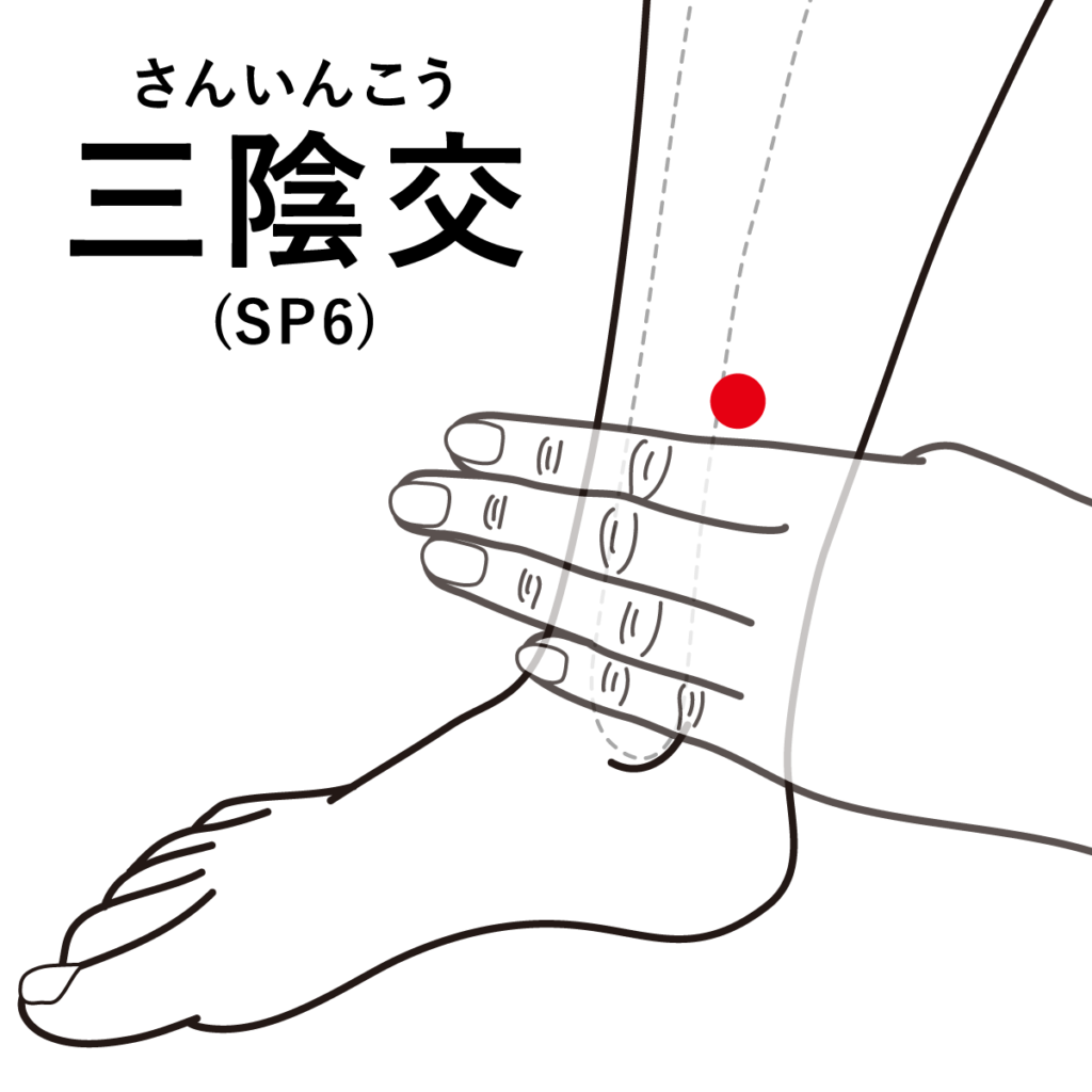 先ほどの三陰交のツボよりさらに上へ骨際を上がり止まる所にあります。