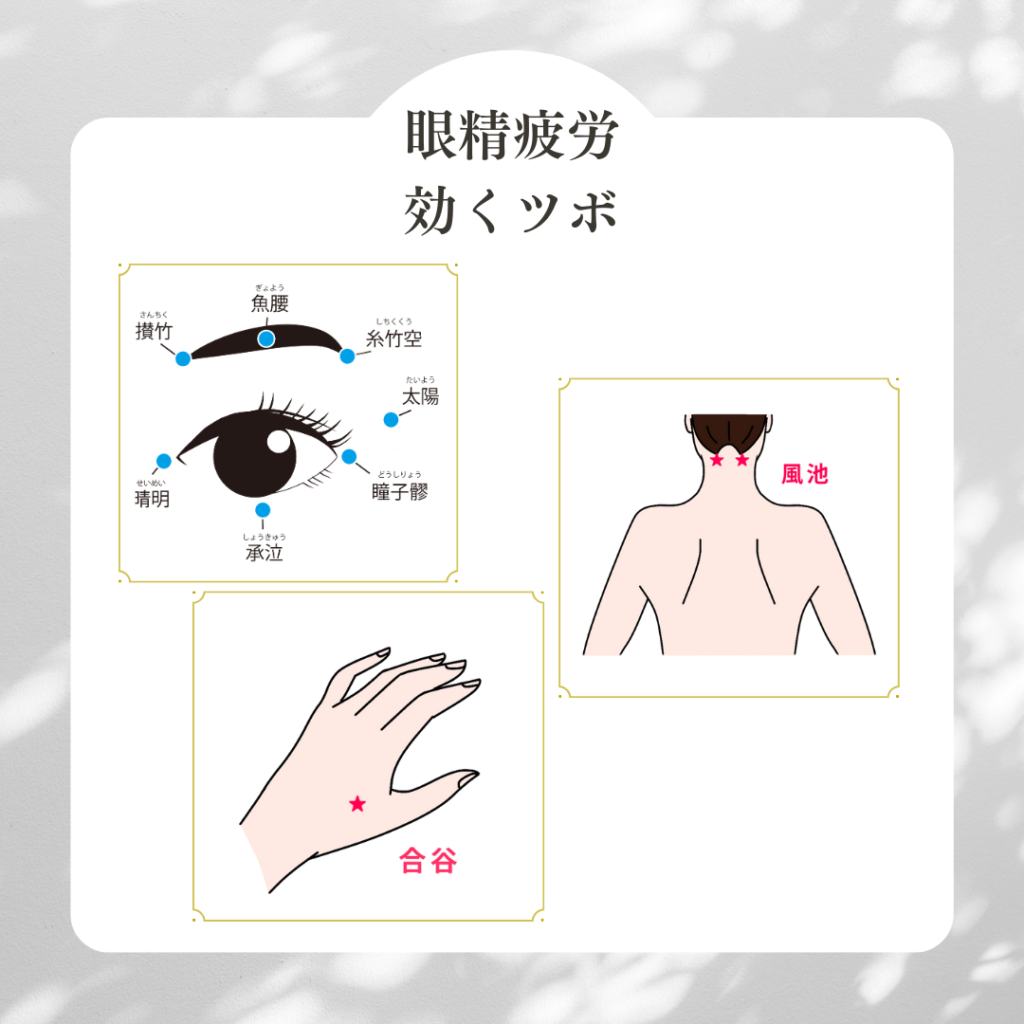 効果:首や肩こりの緩和、頭痛、目の疲れに有効です。